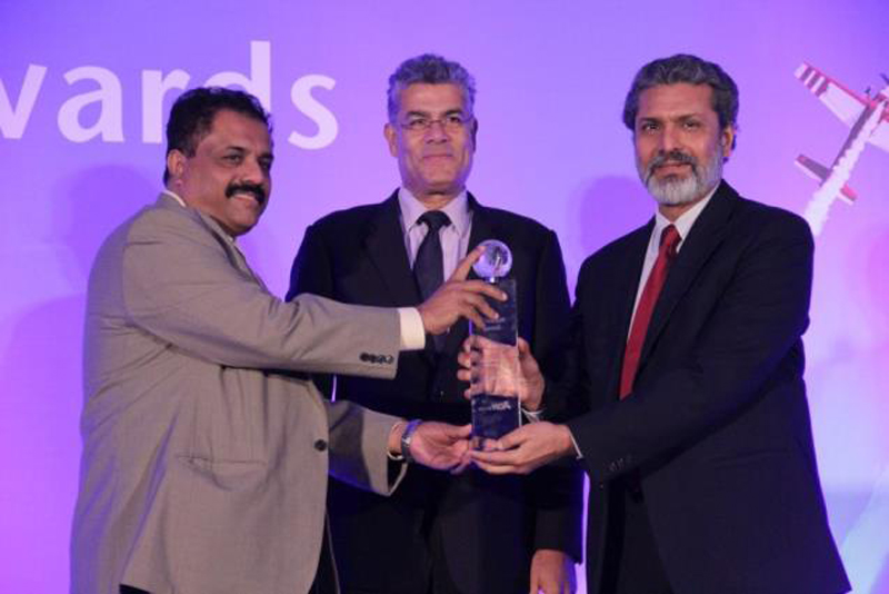 Rajiv Dubey and Prince Augustin accept the award from Yvan Legris on