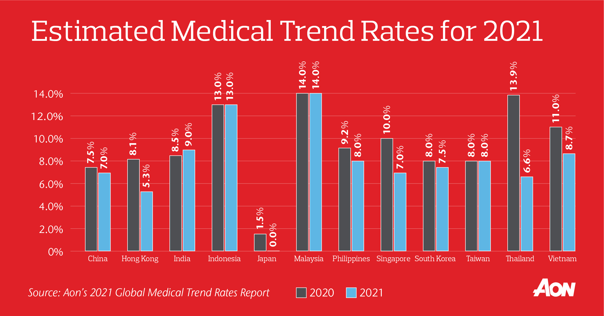 Tim Dwyer, CEO of Health Solutions, Asia Pacific, Aon said, “COVID-19 has underscored the need for better design and management of employee health and benefit programmes. To mitigate medical costs by reducing chronic conditions, employers in Asia Pacific must invest in wellbeing programmes to promote mental health, physical activity, healthy eating, and preventive strategies like physical check-ups and screenings. This could supplement traditional strategies, such as controlling unreasonable plan utilisation, adjusting plan designs, narrowing networks and adding flexible benefit plans.”