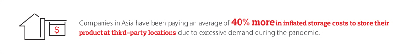 “During the crisis, companies in Asia have been paying on average an extra 40 percent in inflated storage costs to store their product at third-party locations due to excessive demand,” Watts explains. “They have found that solutions like holistic insurance can help them address these unplanned changes in storage needs and new risks exposed along the supply chain.”