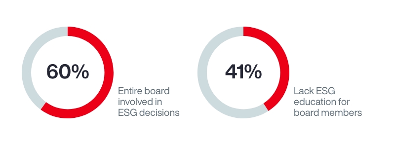 However, whilst the survey found that most companies involve their entire board in ESG decisions, many lack formal ESG training and education for board members.
