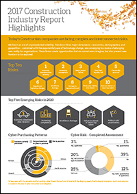 The robust representation of the 2017 survey has enabled Aon to provide insight into risk management practices by industry. Highlighted below are some key challenges facing the construction industry today.