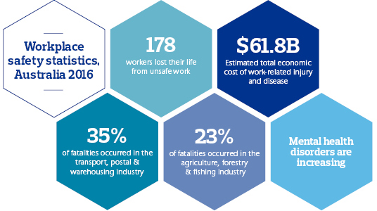No one should be killed or injured as a result of an unsafe work environment. However, in 2016, 178 people tragically lost their life as a result of unsafe work. Preliminary estimates also indicate that 45 Australians have already been killed at work this year, so unfortunately there has not been much improvement this year so far.