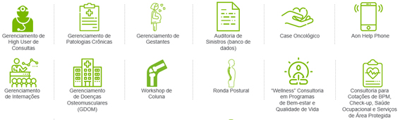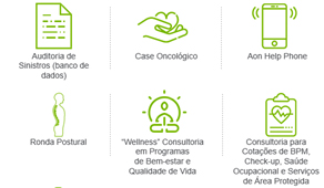 Com uma equipe multidisciplinar formada por médicos, enfermeiras, dentistas, atuários, advogados e consultores especializados, a Aon, oferece soluções completas para que os investimentos em saúde auxiliem a empresa a reter talentos e a melhorar a qualidade de vida de seus colaboradores. Essa equipe é responsável por um processo completo que abrange desenho, implantação e efetivo gerenciamento do benefício.