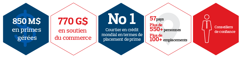 Nos experts qui regroupent plus de 500 spécialistes partout dans le monde, placent plus de 30 % des primes d’assurance crédit commercial dans le monde et sont présents dans plus de 57 pays. Soutenant plus de 770 milliards de dollars de transactions commerciales, nos professionnels désignés possèdent l’expertise nécessaire pour réagir rapidement aux risques dans des environnements commerciaux très volatils. Notre objectif est d’être considérés comme des conseillers de confiance par nos clients en matière de risques commerciaux en tenant la Promesse faite aux clients d’Aon. (en anglais seulement).