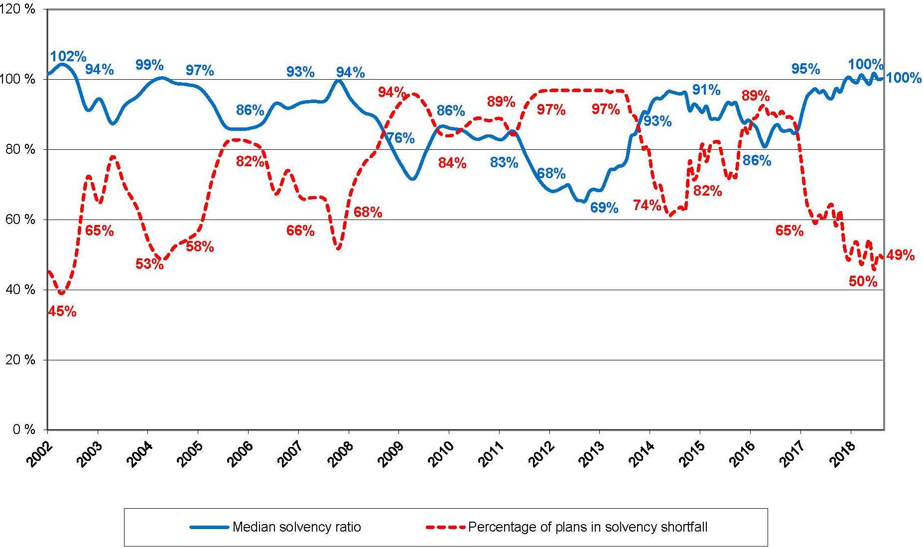 TORONTO (July 4, 2018) – As tensions over trade and shifting monetary policy created volatility in financial markets, the health of Canadian defined benefit pension plans improved in the second quarter of 2018, according to the latest quarterly Median Solvency Ratio survey from Aon, a leading global professional services firm providing a broad range of risk, retirement and health solutions.