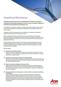 Η ομάδα ασφάλισης πιστωτικού κινδύνου της Aon εξετάζει τις ανάγκες σας και σε συνεργασία με τις κορυφαίες ασφαλιστικές εταιρείες του κλάδου πιστώσεων σχεδιάζει το κατάλληλο πρόγραμμα ασφάλισης πιστώσεων, προσαρμοσμένο στα ειδικά χαρακτηριστικά της επιχείρησης σας.