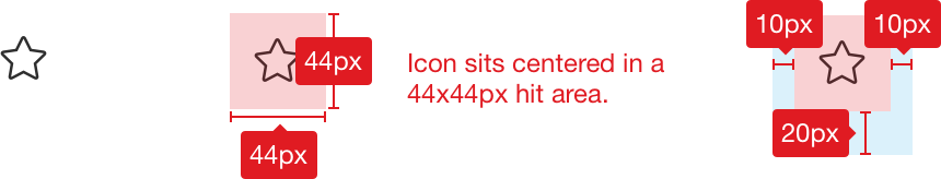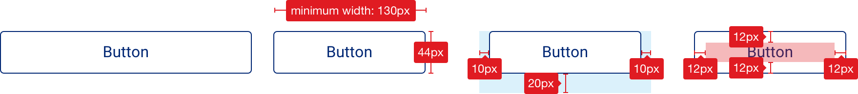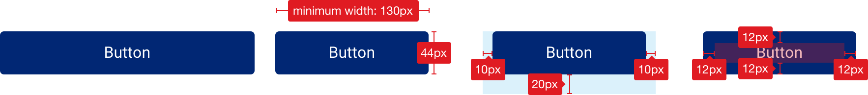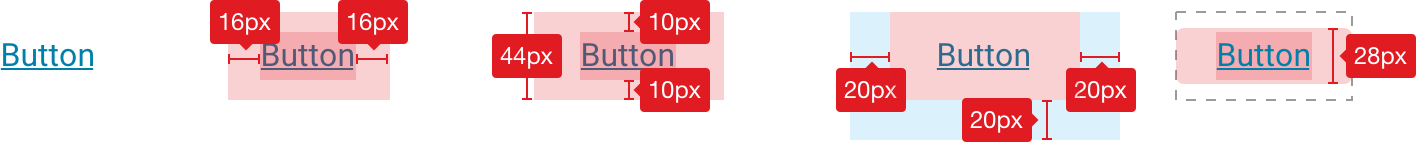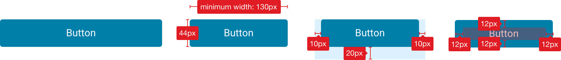 To maintain elements that are usable for all form factor sizes, we have created larger touch targets. The minimum touch target size is 44px. Having buttons, text links, action and utility buttons with this larger touch target enables our users to easily recognize the action as well as easily interact with the experience.