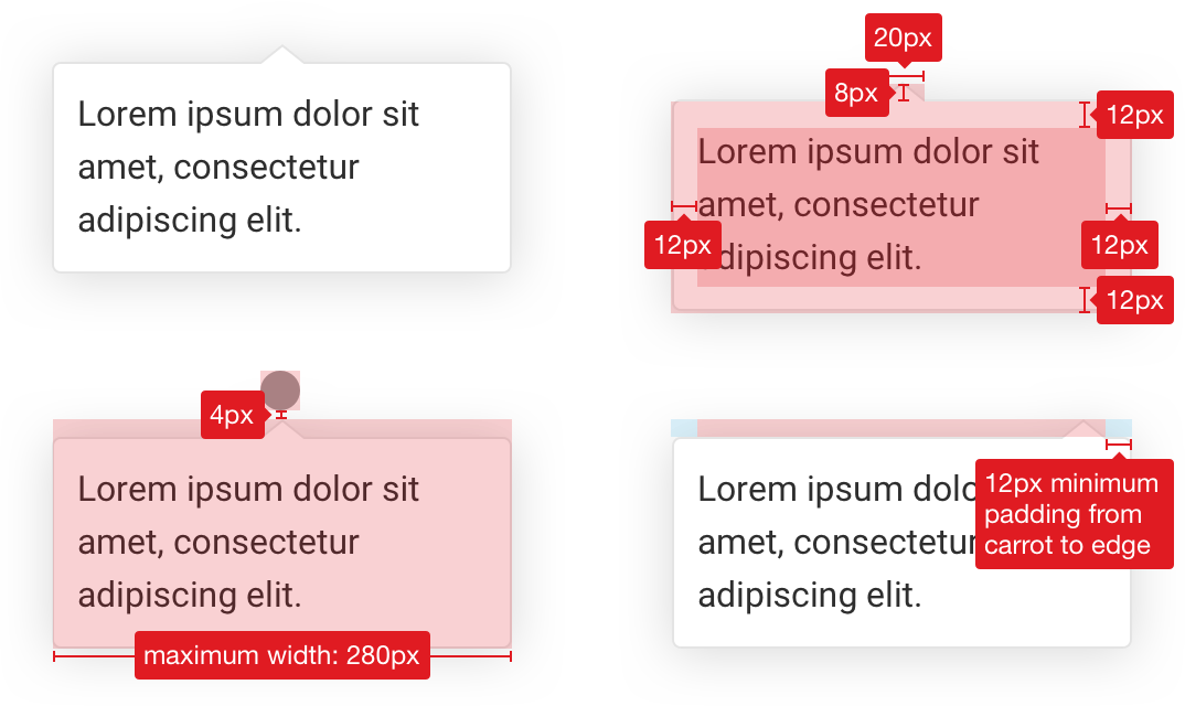 Popover and Tooltip orientation is dependent on the placement on the page. The default is to open below the anchor point, with a centered carrot. If the anchor point is near the edge of the page, the orientation and carrot placement change accordingly.