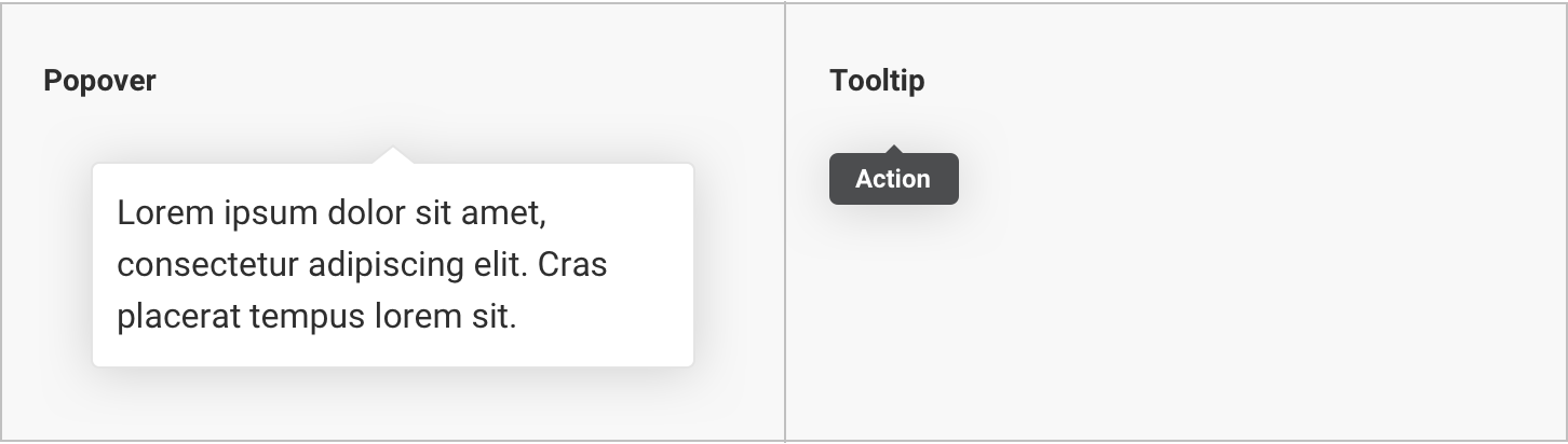 Because overlays are activated on hover or touch, they should be used sparingly. Tooltips are used for short labels, like in a data visualization, while popovers can provide a longer description.