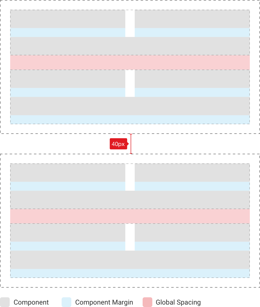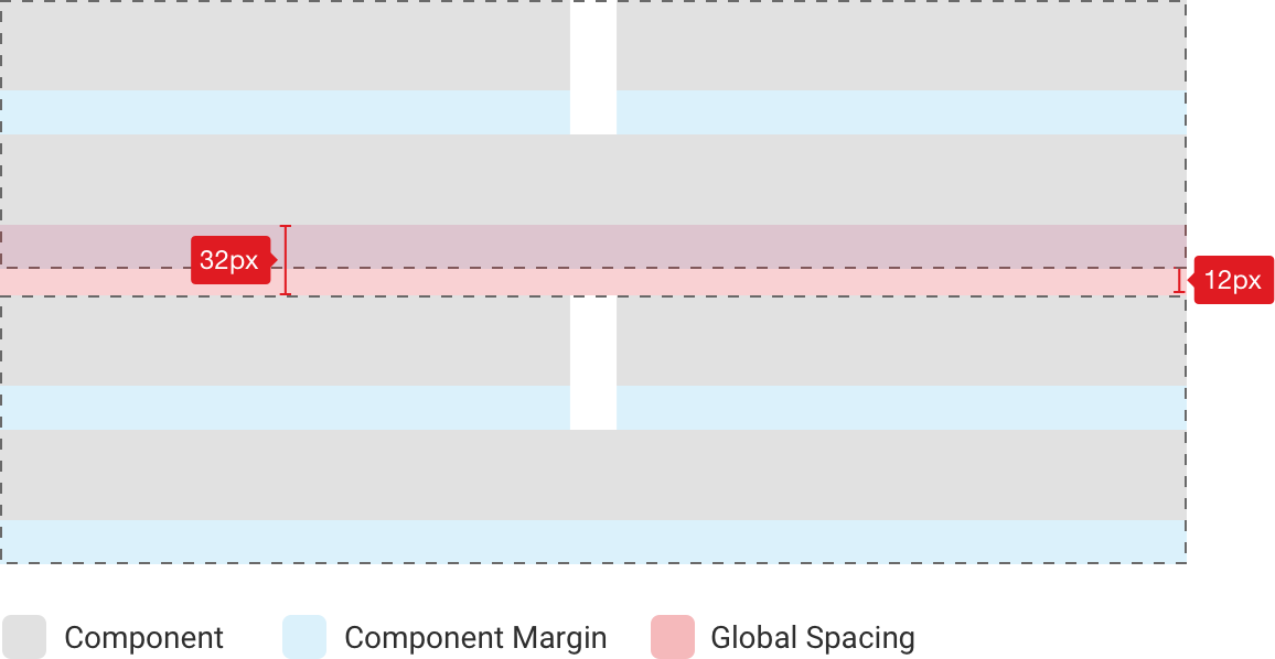 Our system is designed using a 4 pixel baseline grid. Adopting strict vertical spacing principles allows us to achieve design consistency on the Y axis. It governs the spacing between stacked elements within a component, as well as the spacing in between objects on a page.