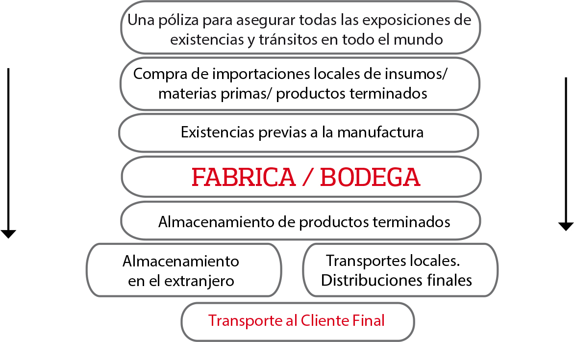 Este tipo de póliza es ideal para prácticamente todas las industrias, ya sea que se trate de fabricación, distribución, venta mayorista o minorista. Ampara todas las existencias y materiales utilizados en la actividad, mientras se encuentren en cualquier lugar del mundo, tanto almacenados como en tránsito. Los beneficios principales de este programa se pueden resumir de la siguiente manera: