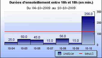 - Le déclenchement de la garantie est subordonné à l’indice METNEXT Sun Index® qui indique la durée d’ensoleillement entre 10h et 18h pour chaque lieu et chaque jour du séjour. La durée d’ensoleillement est définie comme la durée pendant laquelle le rayonnement solaire est d’intensité suffisante (>120W/m2) pour produire des ombres distinctes (source : Météo-France)