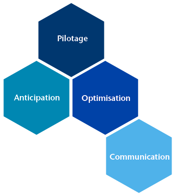 - Présentation des résultats : production de tableaux de bord trimestriels, des projections sur plusieurs exercices comptables (commissaires aux comptes, équipe de consolidation) ;