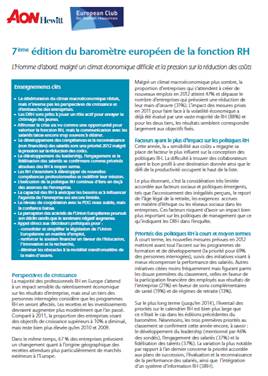 Les DRH consultés dans le cadre de la 7ème édition du baromètre RH européen maintiennent en 2012 d’ambitieux programmes de développement pour le capital humain de leurs entreprises.