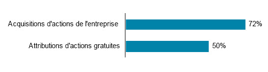 - Fort attrait pour les actions gratuites (50%) et les acquisitions d’actions de l’entreprise (72%). Les actions gratuites nécessitent moins d’opérations.