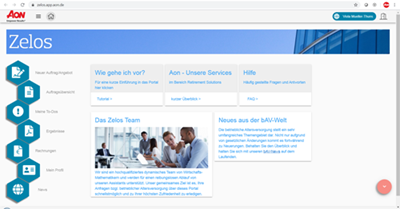 Zelos – unser neues Webportal für Dienstleistungen rund um die betriebliche Altersversorgung – steht ab sofort für unsere Kunden zur Verfügung. Über das Portal können Aufträge für aktuarielle Gutachten, Rentenberechnungen und vieles mehr einfach, papierlos und zeitsparend an uns übermittelt werden. Nach Erbringung der gewünschten Dienstleistungen, werden Ihnen Ihre Ergebnisse ebenfalls auf dem Portal bereitgestellt, ohne Zeitverlust, umweltfreundlich und in gewohnt hoher Qualität.