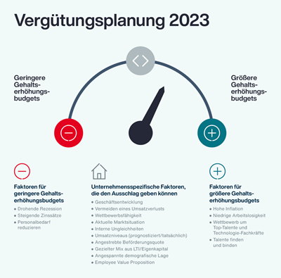 Andererseits gibt es Organisationen, die 2023 geringere Erhöhungen zahlen. „Das sind vor allem Unternehmen, die neben den Gehältern auf weitere Elemente der Vergütungsstrategie, wie attraktive Programme zur Altersvorsorge oder andere Benefits großen Wert legen“, erklärt Adams. „Ebenso trifft das auf Unternehmen zu, die mit schwierigen wirtschaftlichen Bedingungen konfrontiert sind oder die bereits 2022 die Gehälter deutlich erhöht haben.“