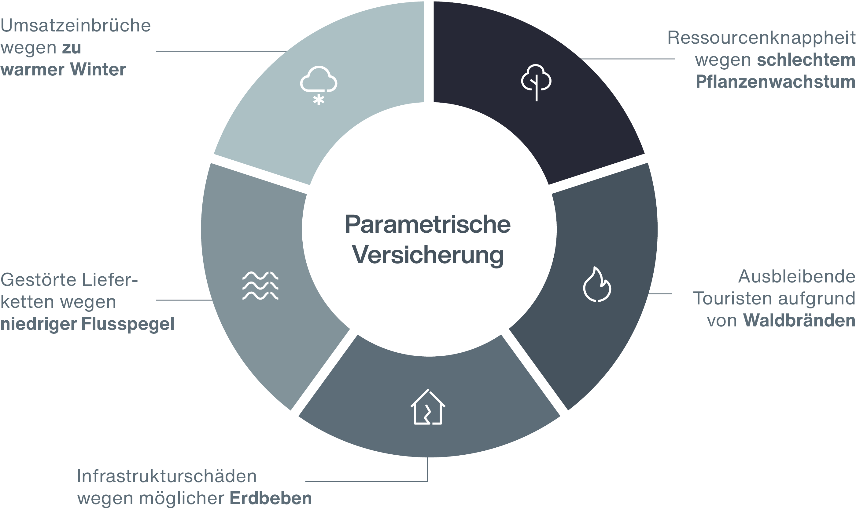 Für diese und viele weitere Risiken eigenen sich parametrische Versicherungslösungen. Viele Unternehmen, Kommunen und auch Regierungen nutzen diese Deckungen bereits zur Absicherung bedeutender Risiken.