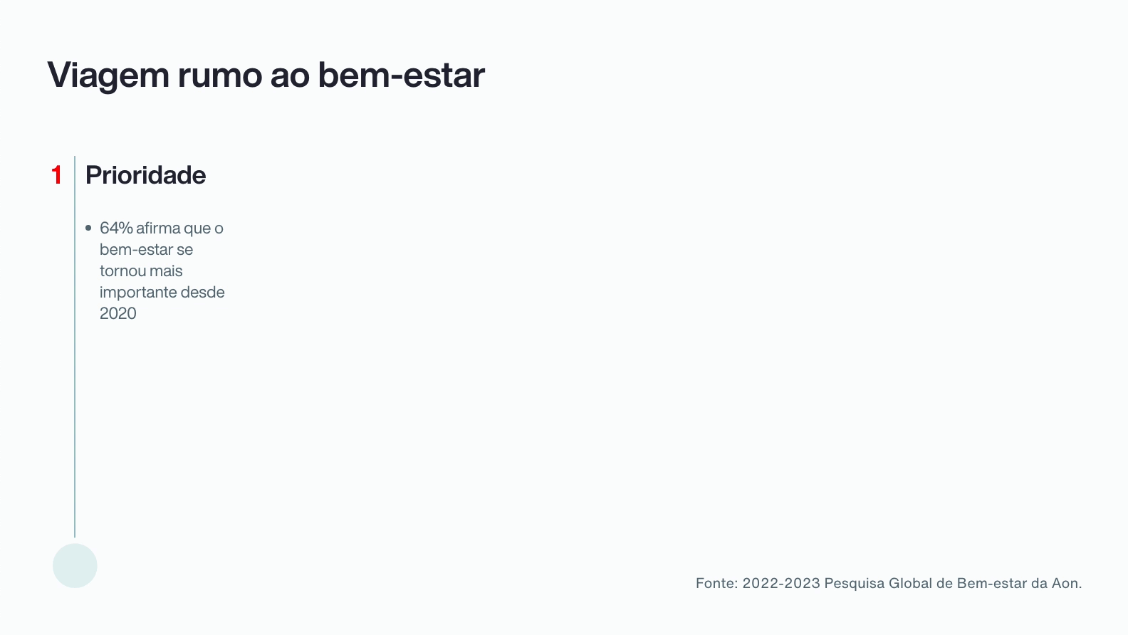 Obtenha mais informação sobre o estado atual do bem-estar, incluindo os aspectos mais destacados por região, descarregando a Pesquisa Global de Bem-estar 2022-2023. Consulte-nos sobre as soluções disponíveis da Aon que podem ajudar a obter insights valiosos para fundamentar melhor suas decisões sobre bem-estar.