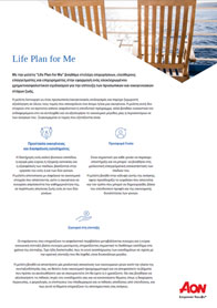 Με την μελέτη “Life Plan for Me” βοηθάμε στελέχη επιχειρήσεων, ελεύθερους επαγγελματίες και επιχειρηματίες στην εφαρμογή ενός ολοκληρωμένου χρηματοασφαλιστικού σχεδιασμού για την επίτευξη των προσωπικών και οικογενειακών στόχων ζωής.