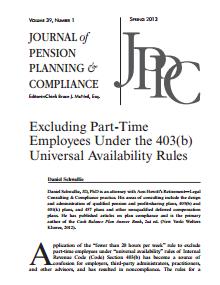 This article, authored by Retirement legal consultant, Dan Schwallie, was published by the Journal of Pension Planning & Compliance, discusses the application of the “fewer than 20 hours per week” rule to exclude part-time employees under Code section 403(b).