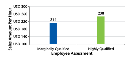 Moreover, in similar assignments conducted in Aon US, it was observed that hiring highly rated manager applicants resulted in equating to 50% higher sales and a reduction of over USD 5000 in labor costs. This information can be used to suggest that an employee who is an appropriate fit for the job can definitely drive the revenue numbers in the favor of his/her organization, inching it closer to its ultimate goal.