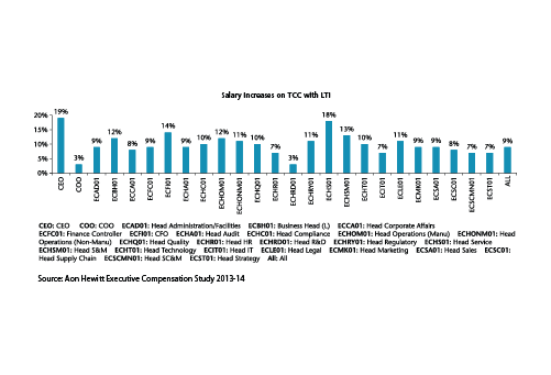 Companies where significant portion of compensation is being delivered through variable components (short and long-term incentives >50% of total compensation) showed an average salary increase of 20% compared to companies where pay mix is skewed towards fixed payments. This compensation increase factor again gets loaded more onto the long-term component than the annual component of pay. We note that mature Indian companies are raising the