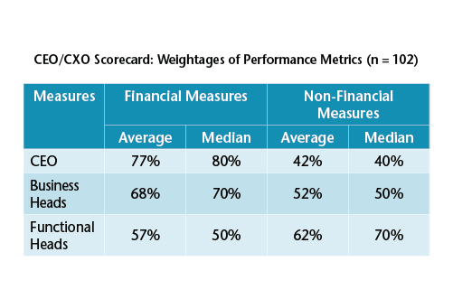 CEO/CXO Scorecard: Weightages of Performance Metrics (n = 102)