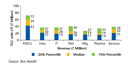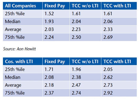 The Aon Hewitt Executive Compensation study brings upsome interesting insights on how the executives are being paid in today's environment in different industries. The analysis not only throws light on the quantum of pay for CEOs and other executives but also shows some interesting insights on how total compensation is structured.