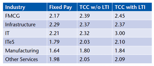 Industry-wise Ratio of CEO Pay to Key CXOs