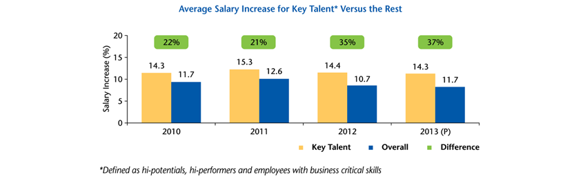 higher salary increases to their key talent and each year, we are seeing the gap widen.