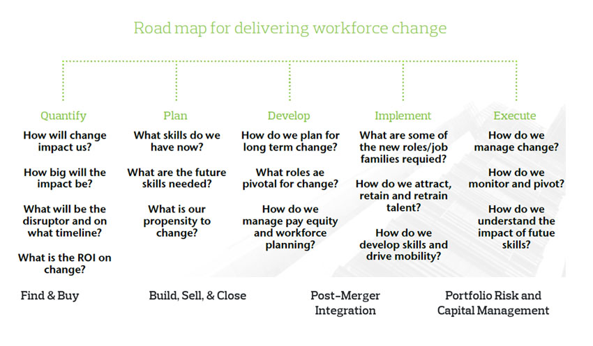 The future skills required to drive change and improve competitiveness cannot be acquired only through a talent acquisition strategy, which is expensive and unsustainable given the tight labour market for leading-edge technology and digital competencies. Financial institutions need a comprehensive reskilling and upskilling program for current employees and a compelling total rewards program that retains high-impact talent.