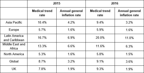 "The UK is one of the worst performing markets with higher medical inflation than the European and Global averages. The pressure on the UK's National Health Service is driving significant growth in the private healthcare sector. In particular the cost of employer sponsored medical plans continues to grow rapidly and is outstripping the medical inflation seen in other European economies."