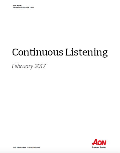 It's time to change the way employers understand the employee experience (not just engagement) and how to manage it - and Continuous Listening is the answer. To accurately measure and manage the level of psychological investment employees put in an organisation, employers must change the way they get that information.