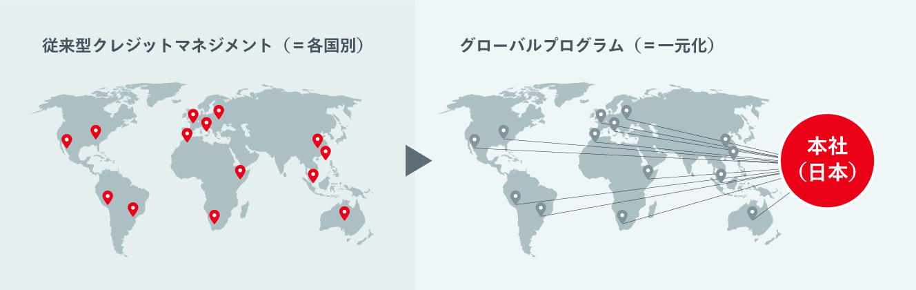 海外現地法人の取引先の信用リスクの可視化を含め、グローバルでのリスクの一元管理が可能となります。