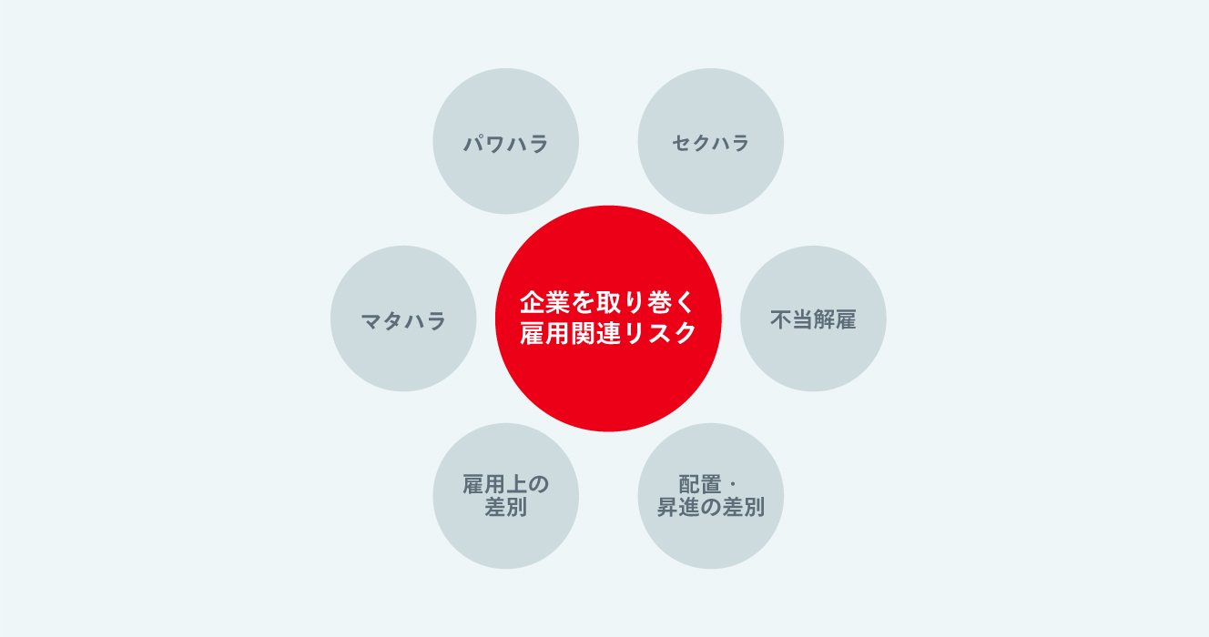 不当解雇、ハラスメント、差別といった不当な行為に起因する企業の雇用関連リスク対策をサポートします。