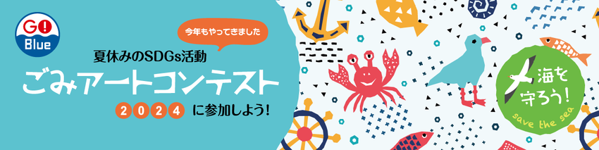 エーオンジャパングループの環境保護活動「Go! Blue Project」では、昨年に引き続き今夏も海や山のごみを拾って作品を制作し、写真を投稿する「ごみアートコンテスト2024」を開催いたします。 第4回目となる本コンテストへ夏休みの自由研究課題として、またSDGs活動の一環として、ご家族・お子様と一緒にお取り組みください。皆さまのアイディアあふれる素晴らしい作品を楽しみにお待ちしております。