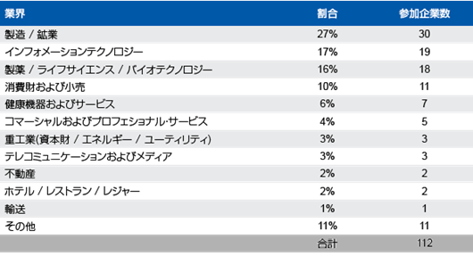 製造/鉱業、IT、製薬/ライフサイエンス/バイオテクノロジーを中心に、様々な業界からご参加頂きました。企業の規模としては、100名未満の企業から10,000名以上の企業まで満遍なく分布しています。また、日系企業よりも外資系企業の比率が高いことが本年の調査の特徴です。