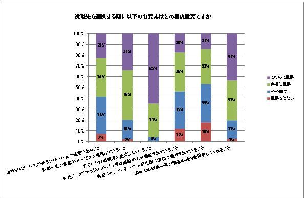 さらに、調査結果からは、求職者が就職先を選択する際に最も重要な要素は労働環境であることも明らかになった。その他、海外での研修参加や能力開発の機会があるかどうか、会社が世界一流の製品やサービスを提供しているかなどが就職先選択の際の重要な要素として挙げられている(図表2参照)。