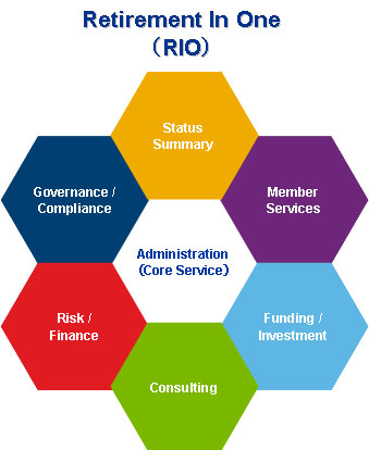 RIO consists of seven pillars. Each pillar represents the main objective of areas that need to be covered for retirement plan management.