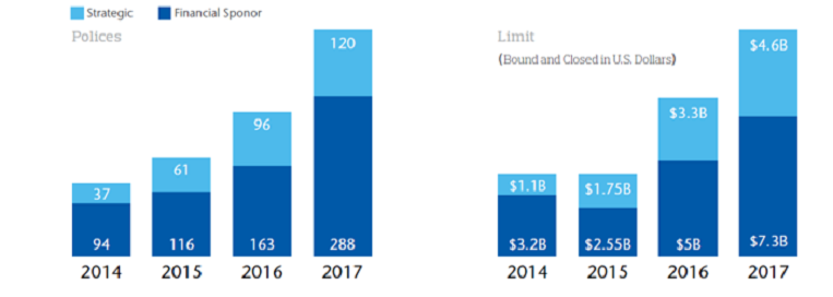 in limits available per deal amassed by the growth in insurance capacity from nine insurers in 2014 to nearly 30 in 2017