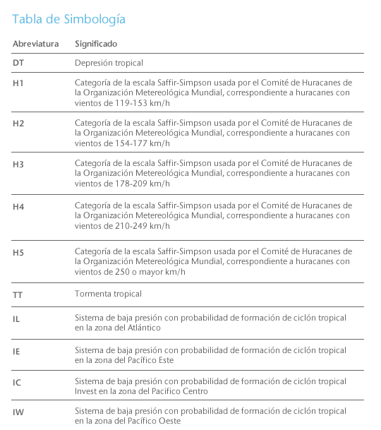 Una vigilancia de huracán significa que es posible experimentar condiciones de huracán dentro del área bajo vigilancia. Una vigilancia es típicamente emitida 48 horas antes de que se experimenten los primeros vientos con fuerza de tormenta Una vigilancia de tormenta tropical significa que las condiciones de tormenta tropical son posibles dentro del área bajo vigilancia. Generalmente en 48 horas.