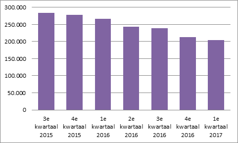 Aantal personen in het doelgroepregister in Nederland per kwartaal (Bron: UWV)