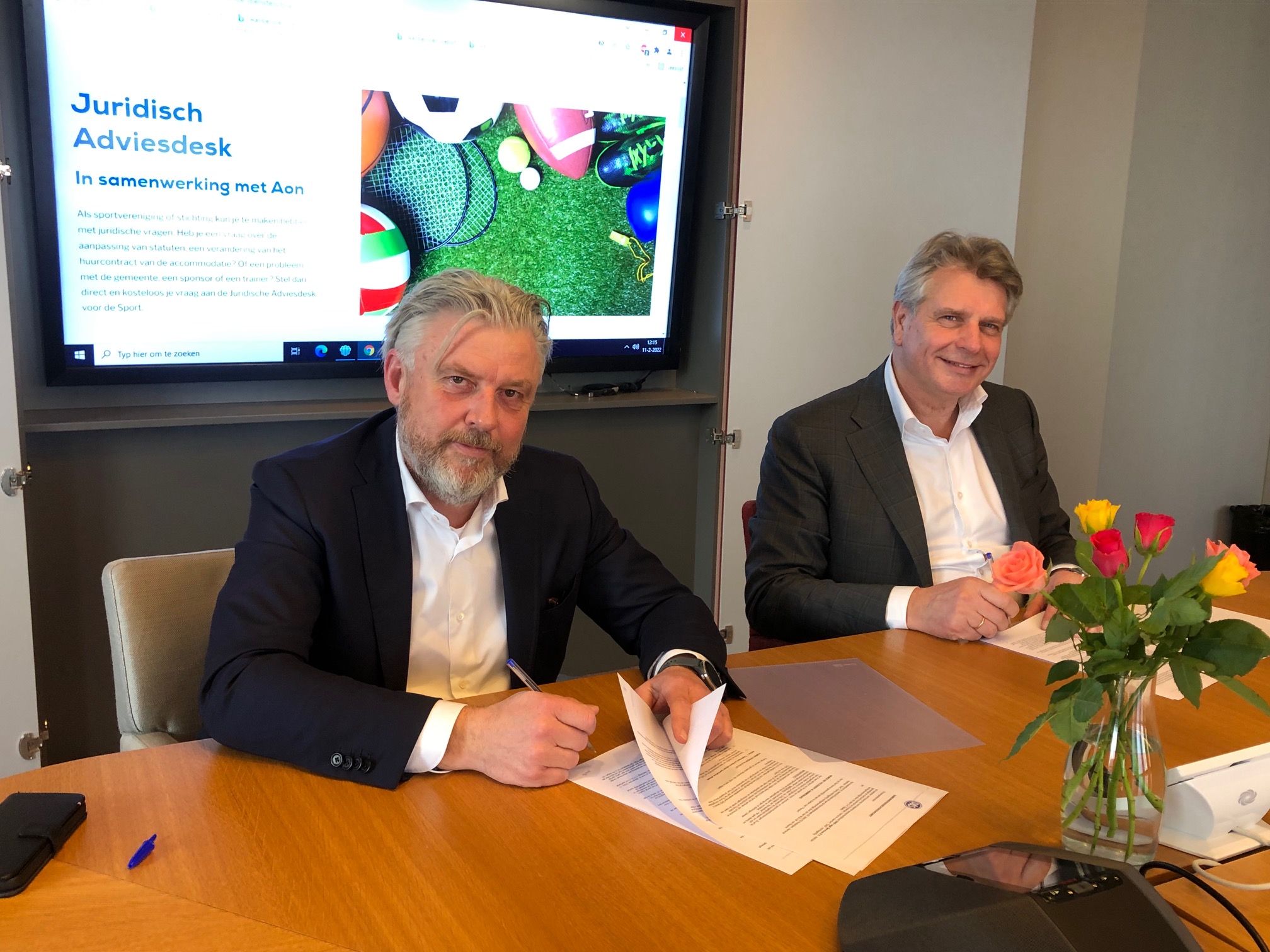 ROTTERDAM, 15 februari 2022 - De verantwoordelijkheden van sportbesturen worden steeds groter door veranderende wet- en regelgeving, het cyberveilig omgaan met ledenbestanden, vandalisme en aansprakelijksheidsrisico’s. Aon wil sportorganisaties graag verder helpen in deze complexe wereld van risico’s en verantwoordelijkheden en lanceert daarom het platform ‘Samen voor de Sportieve Zaak’. Het platform wordt gelanceerd in samenwerking met ketenpartners voor de sportorganisaties in Nederland. Eén van de partners is juridisch dienstverlener DAS. Vrijdag 11 februari tekenden Marc van Nuland (CEO Aon Nederland) en Charles Staats (Chief Commercial Officer DAS) een samenwerkingsovereenkomst waarbij Aon de Nederlandse sportverenigingen kosteloos ondersteunt met 1e lijns juridisch advies van DAS. Hiermee krijgen sportverenigingen de laagdrempelige toegang tot juridische expertise die zij zelf vaak niet hebben, maar waar wel behoefte aan is.