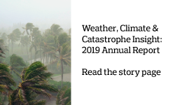 Impact Forecasting provides real-time information on catastrophic events through Cat Alerts, Weekly and Monthly Cat Recaps and the Annual Global Climate and Catastrophe Report. The Catastrophe Insight portal provides aggregated economic and insured loss data for global natural catastrophe events during the current year plus the previous decade. Users can compare losses by peril or region.
