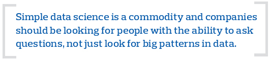 A: In any evolving field, it’s important to remember that the candidates that might have the best outcome can come from diverse backgrounds. There isn’t a typical hire when finding the best resources in these fields. Unlike long-time industry practitioners that can help you solve problems and create new solutions with current methods, there’s going to be people who see the problem differently, and really understand the possibilities. It’s also important for leaders to recognize that these people are likely some of the smartest in the building and they need the business context to end up with the right results. You can’t treat them like the back-office number crunchers.