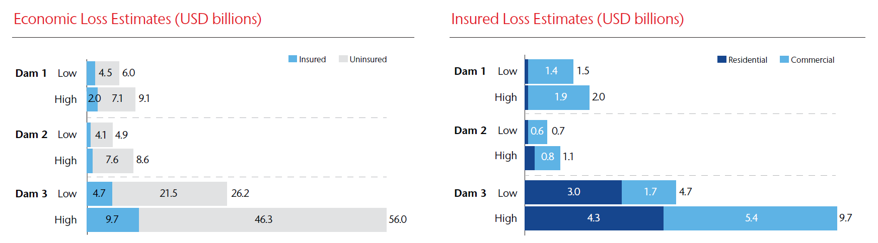 - Major impacts not only to dam operations but also to the resilience of local businesses and communities, with the highest economic loss estimated at USD 56 billion,