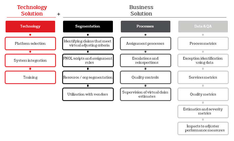 To facilitate these types of results and implement virtual adjusting capabilities, insurers need to focus beyond the technology. Operational processes, data models and KPIs – as part of a holistic approach – also need to be aligned for the technology to effectively meet the needs of the business.