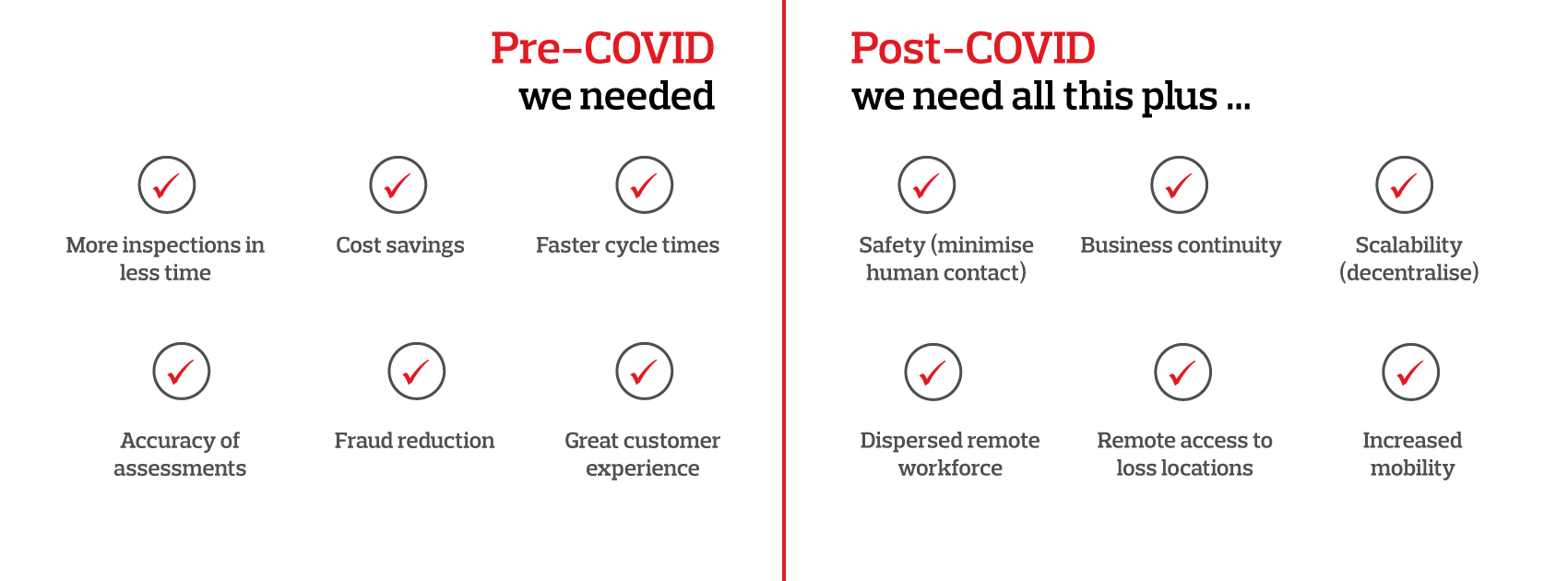 Well, virtual inspections were already an extremely valuable tool – helping insurers to cut costs, reduce lifecycles, track fraud and more. COVID has simply exaggerated an existing market need for both decentralization and mobility.