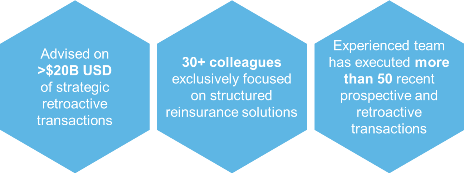 Secured capital, advised, and executed 40+ complex reserve risk deals involving $30 billion of reserves by a team with 100+ years of legacy experience
